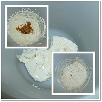 - นำครีมชีส เนยสด นมข้นหวาน น้ำมะนาว มาผสมกัน แล้วตีให้ขึ้นฟูด้วย