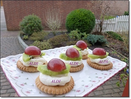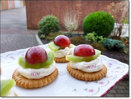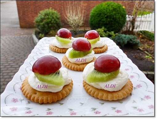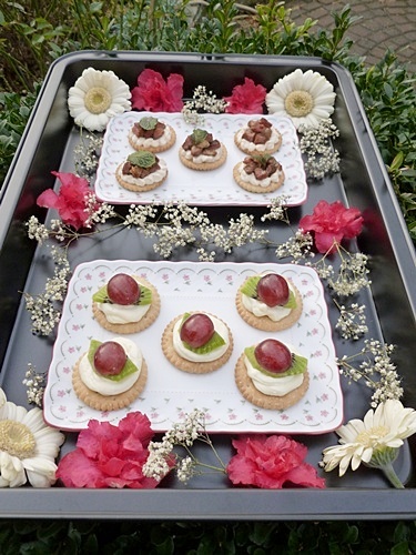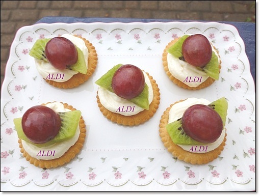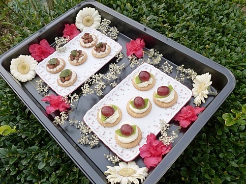 - ตกแต่งด้วยกีวีสดและองุ่นสด