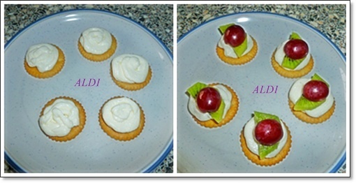 - บีบหรือทาครีมชีสลงบนแครกเกอร์