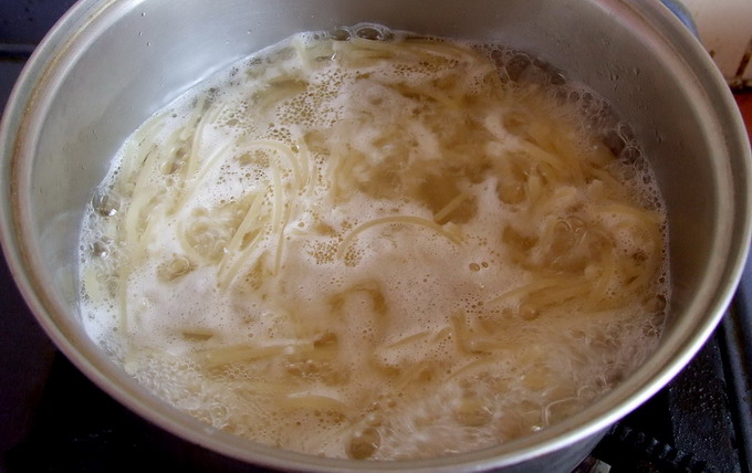 ตามด้วยเส้นสปาเก็ตตี้ค่ะ อันนี้สะดวกใช้ยี่ห้อไหน ก็ตามสะดวกเลยค่ะ