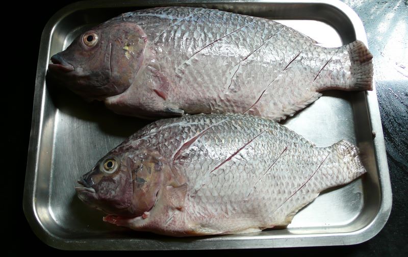 ซื้อปลานิลมา 2 ตัว ให้ทางแผง ขอดเกล็ดควักไส้ ออก