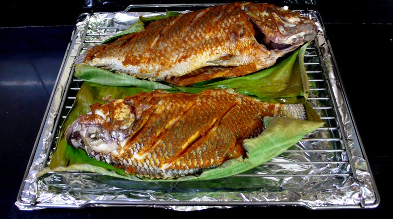 อบต่ออีก 10 นาที เร่งไฟเป็น 220 อบต่ออีก 5 นาที ปลาสุกพอดี