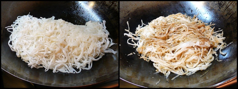 จัดการผัดเส้นเฝอให้หอม เติมซีอิ้วดำไปด้วย