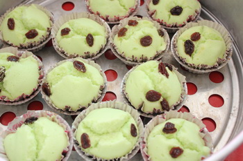 ขั้นตอนการทำ เหมือนปุยฝ้ายทั่วไปทุกอย่าง เพียงแต่เพิ่มลูกเกดโรยหน้า ก่อนนำไปนึ่ง เท่านั้นเองค่ะ