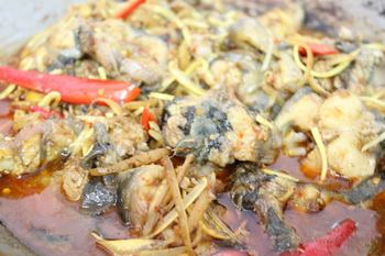 1. ล้างปลาให้สะอาด กระชายซอย พริกหั่นแฉลบ ล้างให้สะอาด พักไว้