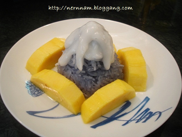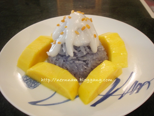 จากนั้นโรยหน้าด้วยถั่วทองคั่ว ทานกับมะม่วงสุก