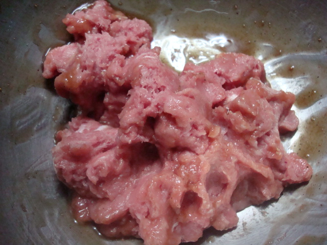 2. ขณะที่กำลังเคี่ยวกระดูกหมู เราก็มาทำลูกเงาะกัน หมูบดใช้หมูสันใน นำมาบดเองเราใช้เครื่องบดหมูที่ซื้อมาพร้อมกับเครื่องปั่นผลไม้ ถ้าซื้อหมูบดจากตลาดจะไม่อร่อย เพราะมีแต่มันหมู