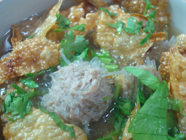 10. ตักลูกเงาะใส่ โรยด้วยเต้าหู้แผ่นทอด ต้นหอม ผักชี (ชามนี้ของก๋ง คนแก่กินแครรอทไม่เป็น)