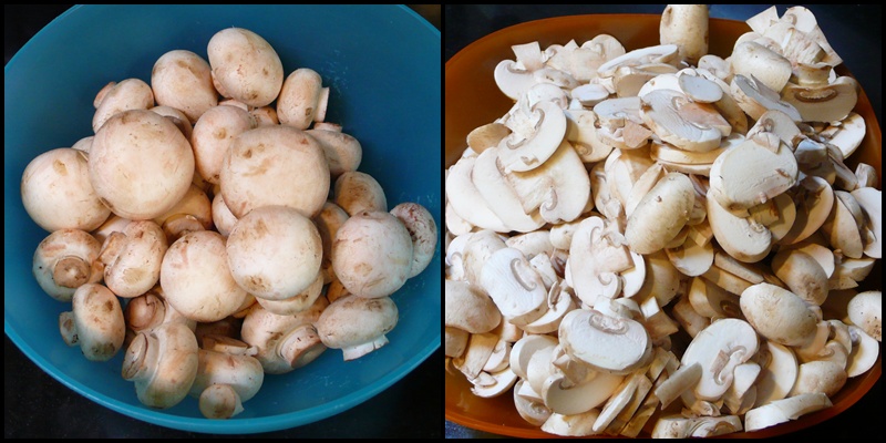 เห็ดแชมปิญอง หั่นเป็นชิ้นบางๆ