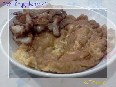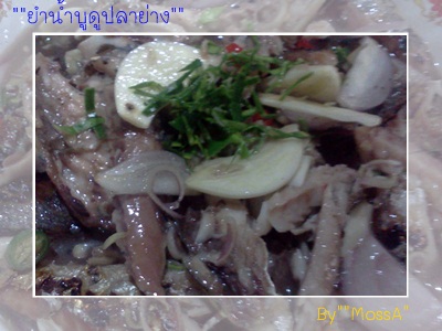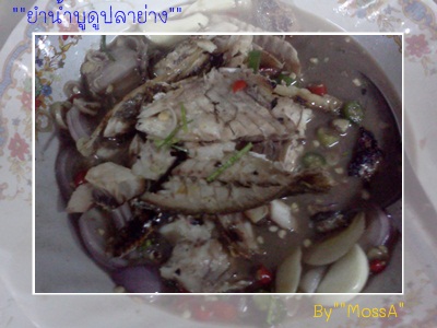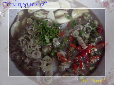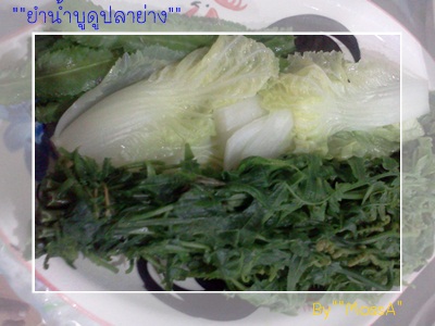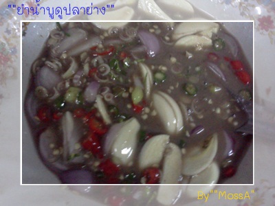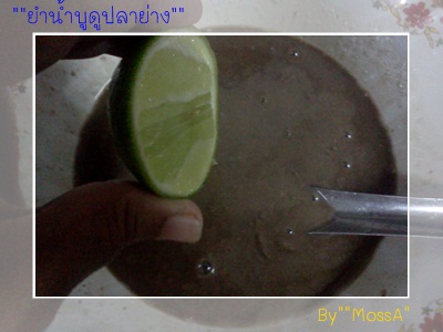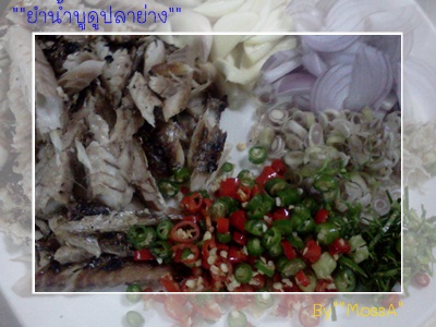 แต่เมนูของเราวันนี้คือ ยำน้ำบูดูปลาย่าง จึงต้องใส่เนื้อปลาที่แกะรอไว้ซะก่อนค่ะ (ถ้าขี้เกียจย่างปลาจะต้มปลาให้สุกแล้วแกะเอาแต่เนื้อใส่แทนก็ได้ค่ะอร่อยเหมือนกัน)