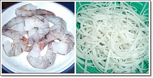 - ผัดพอเส้นสุกนุ่มใส่ซอสผัดไทย พริกป่น ผัดพอทั่วใส่กุ้งที่ผัดไว้ - ใส่น้ำมันที่เหลือ 1/2 ช้อนโต๊ะ และใส่ไข่ลงไปยีไข่แดงให้แตก
