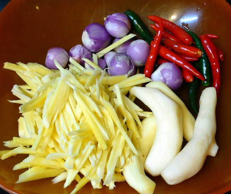 เครื่องยำ ขมิ้นขาว หอมแดง พริกขี้หนู